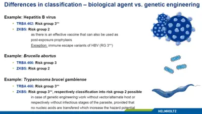 - Basics and application of the legal requirements of genetic engineering law and regulations.