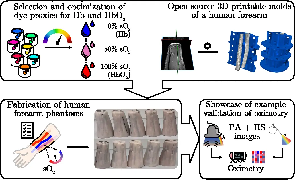 Dreher, K. K., Gröhl, J., Grace, F., Ayala, L., Nölke, J.-H., Bender, C. J., Watt, M. J., White, K.-L., Tao, R., Johnen, W., Tizabi, M. D., Seitel, A., Maier-Hein, L., & Bohndiek, S. E. (2025). Anthropomorphic tissue-mimicking phantoms for oximetry validation in multispectral optical imaging. Journal of Biomedical Optics, 30(7). [pdf]