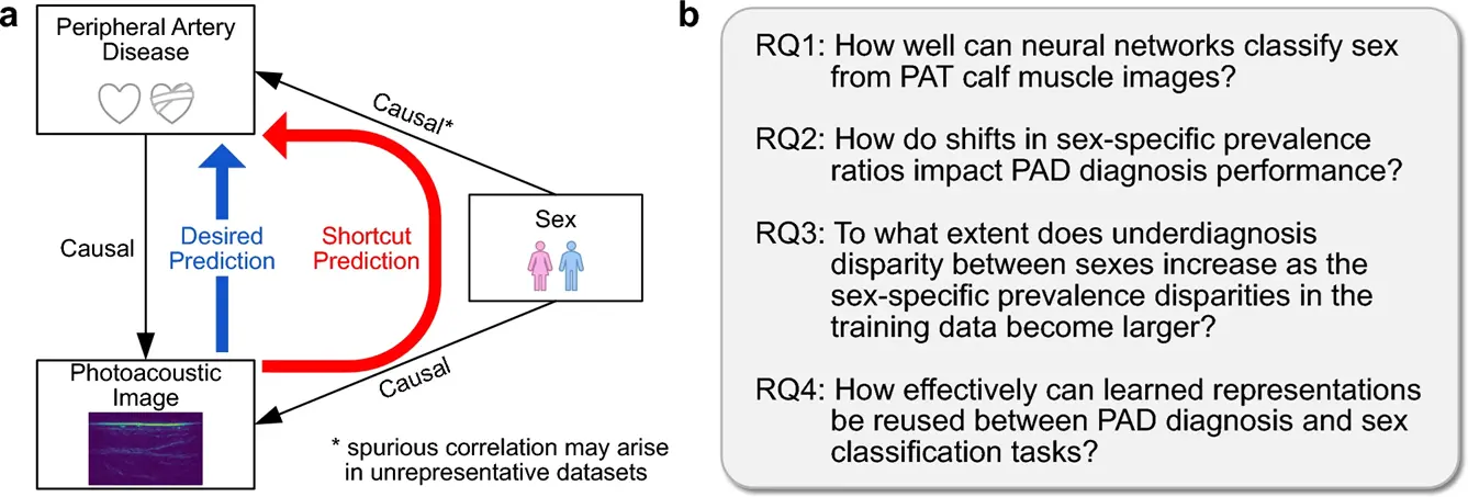 Conclusion: CNN-based models trained on PAT data may engage in shortcut learning by leveraging sex-related features, leading to biased and unreliable diagnostic predictions. Addressing demographic-specific prevalence imbalances and preventing shortcut learning is critical for developing models in the medical field that are both accurate and equitable across diverse patient populations.