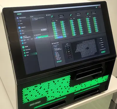 Biomark™ HD is an automated, high-performance PCR system that uses microfluidics technology to process samples at nanoliter-scale volumes for gene expression, genotyping and copy number variation analysis. High-throughput IFCs can be performed in two formats (# Templates vs # Assays): 1) 96.96 (9,216 reactions), 2) 48.48 (2,304 reactions).