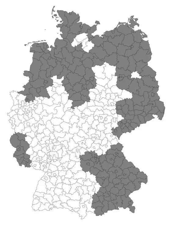 To protect patient anonymity, the analysis was based on districts (“Landkreis“) rather than places of residence. The epidemiologists classified the districts according to a set of paramaters describing their socioeconomic situation. These parameters included, for example, per capita income, unemployment rates, and community proceeds and expenses.