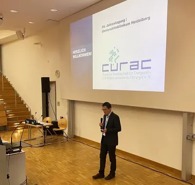 Tian hielt auf der CURAC 2025 in Heidelberg einen Vortrag zum Thema „Mikroroboter für minimalinvasive Chirurgie”.
